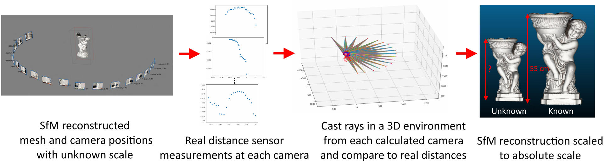 Capturing details of objects and surfaces using structure from motion (SfM) 3D reconstruction has become an important part of data gathering in geomapping, medicine, cultural heritage, and the energy and production industries. One inherent problem with SfM, due to its reliance on 2D images, is the ambiguity of the reconstruction's scale. Absolute scale can be calculated by using the data from additional sensors. This chapter demonstrates how distance sensors can be used to calculate the scale of a reconstructed object. In addition, the authors demonstrate that the uncertainty of the calculated scale can be computed and how it depends on the precision of the used sensors. The provided methods are straightforward and easy to integrate into the workflow of commercial SfM solutions.