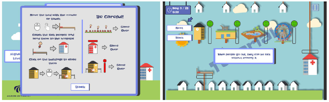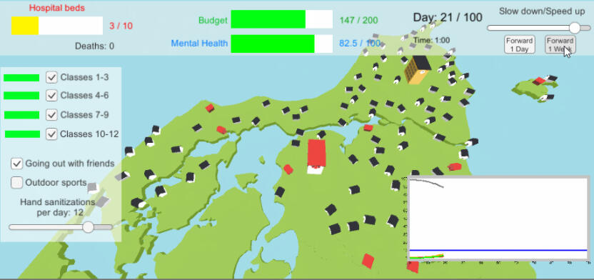 An educational game, made for explaining the government pandemic response of closing and opening infrastructure for limiting infection spread