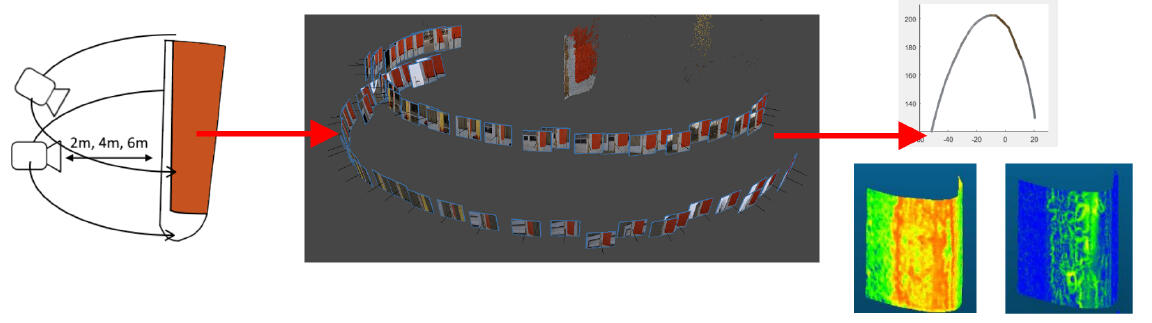 The produced 3D surface data needs to be also analysed. First, for removing any noise and geometrical errors introduced by SfM and later for determining the quality of the reconstructions and if they can be used for their intended tasks. An automatic method for separating noise and real surface roughness is presented in the thesis, together with a comparison between SfM and microscopy reconstructions, for determining the accuracy of the captured data.